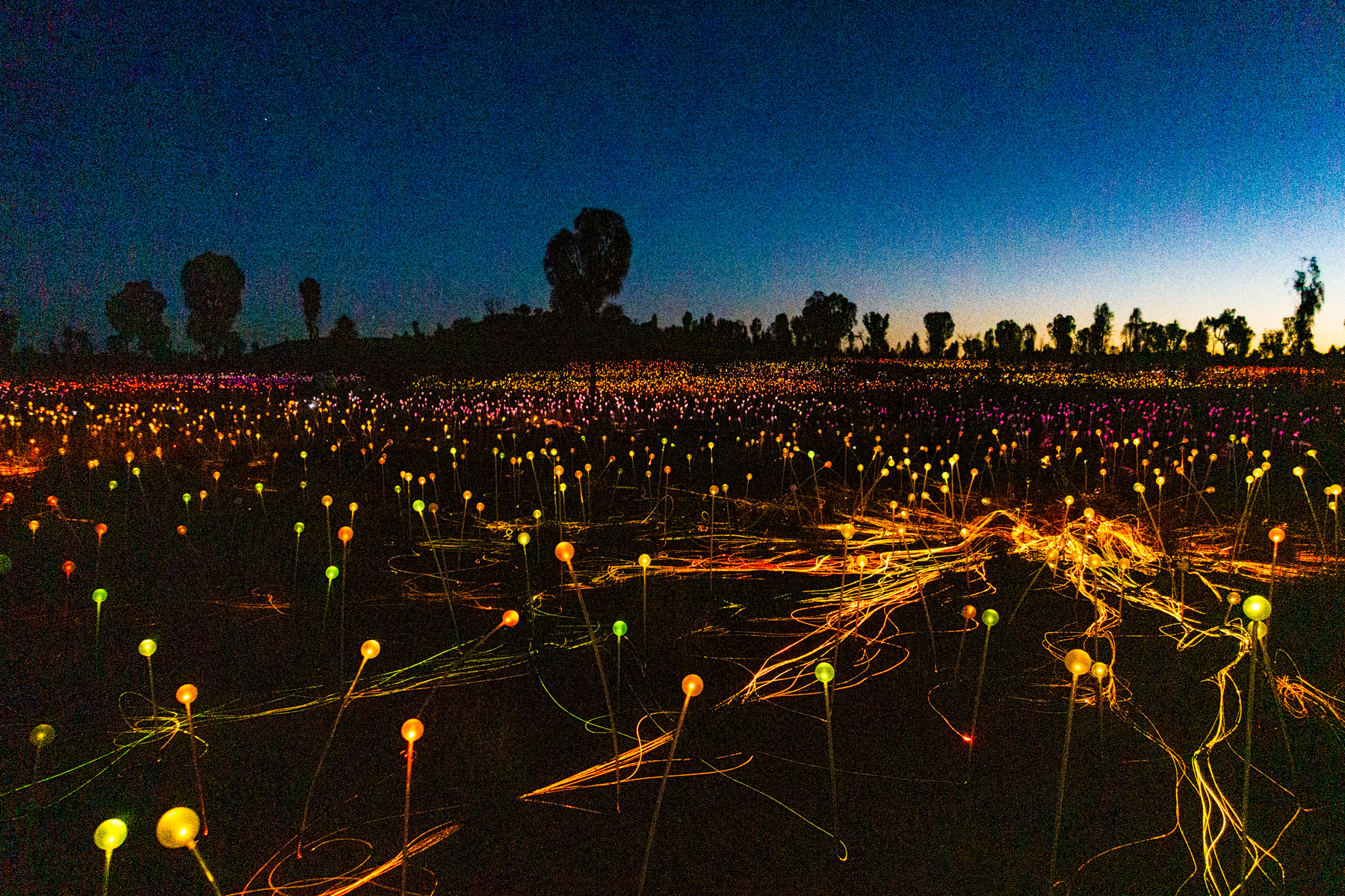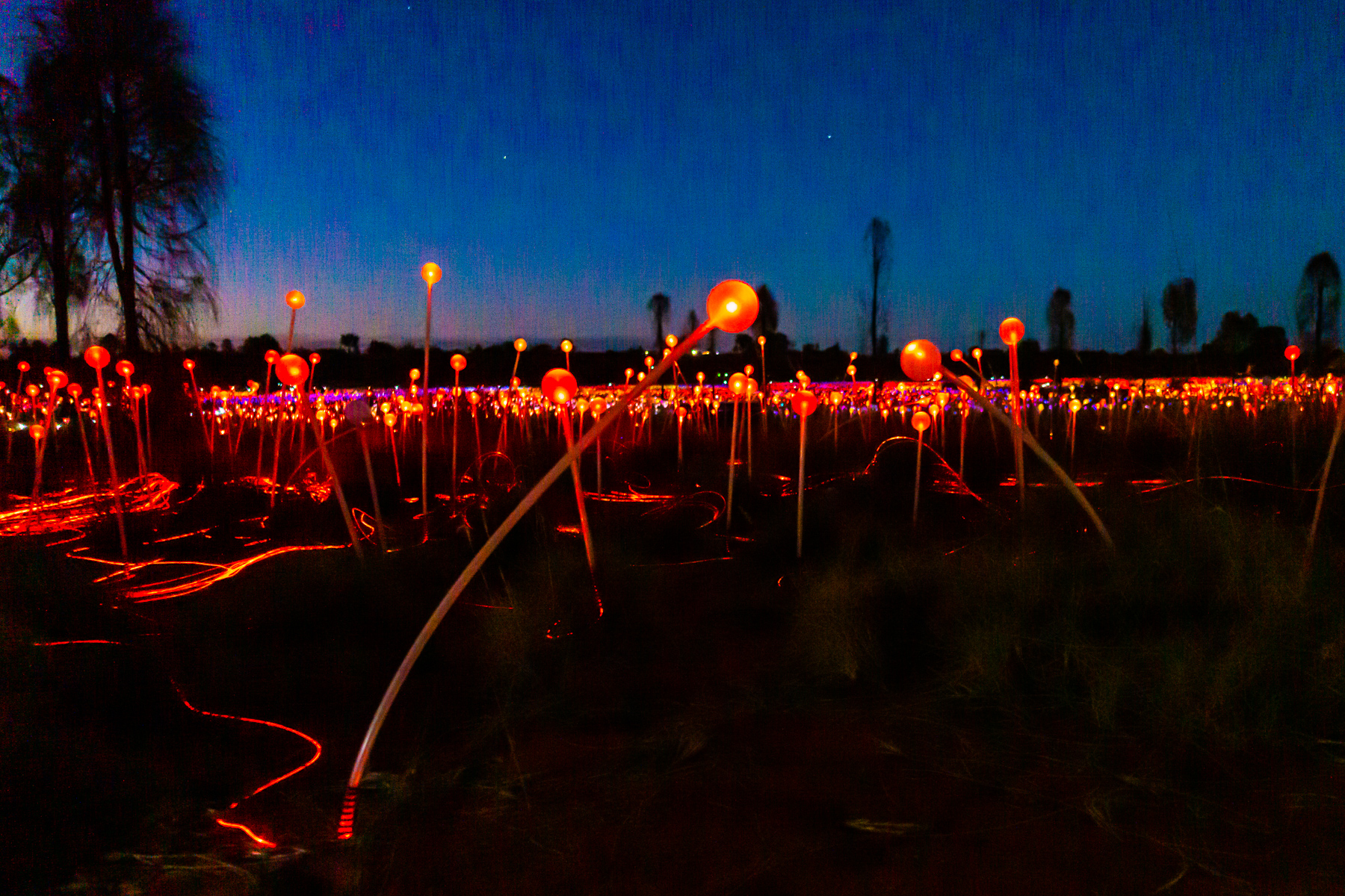 Our next activity was a visit to Tili Wiru Tjuta Nyakutjaku (“looking at lots of beautiful lights” in the local Pitjantjatjara language), an art installation by Bruce Munro that covers an area greater than seven football fields with an incredible display of lights.