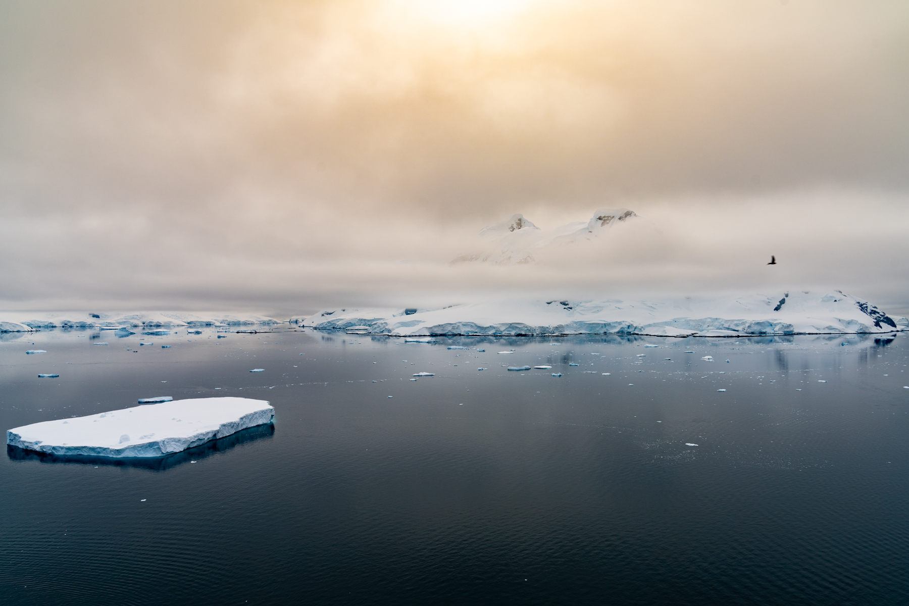 After dinner we headed to the observation deck on level five as we approached the Lemaire Channel, a very narrow channel between two steep cliff faces. The plan was to pass through the channel but it was blocked with heavy ice. We were able to sail up to the channel to have a look at it and it was very beautiful.