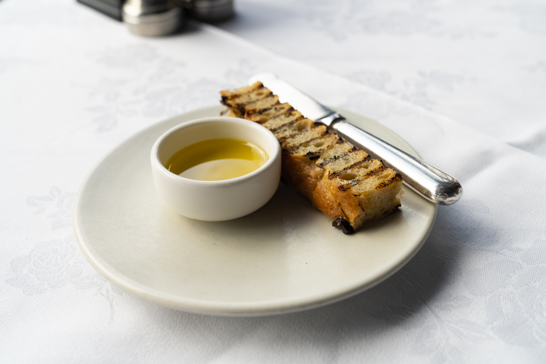 We got dressed for dinner and headed to the dining room. We bypassed drinks and canapes in the bar and opted to have them at our table before dinner. We were surprised to be offered a table outside for dinner because it was only about 14C outside but, oddly, 14C here seems much warmer than it is in Melbourne! So, we sat outside, looking over the beautiful lake and mountains.