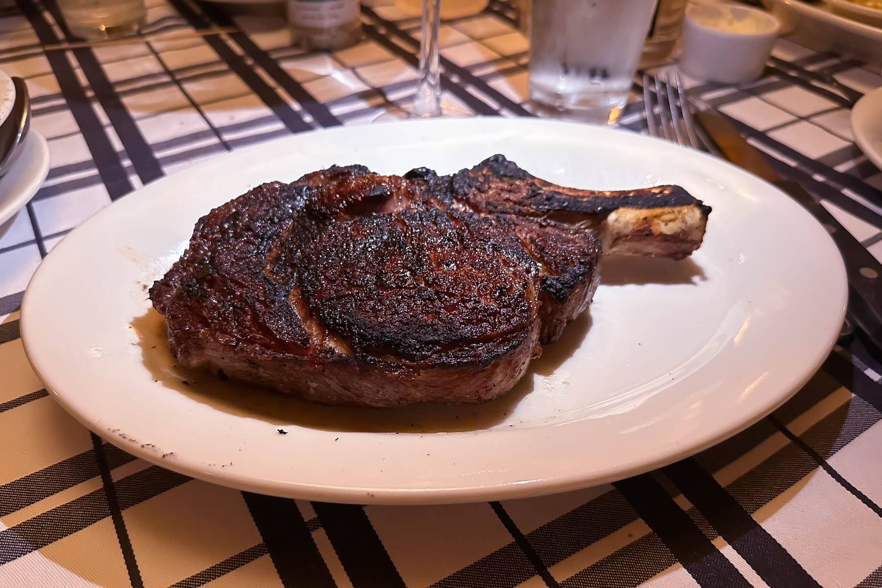 Around 7:00 pm the hotel’s driver dropped us at the renowned Gibsons Bar & Steakhouse on Rush Street, where we were meeting Earl and Sue for dinner. Earl and Keith started with a martini, for which Gibsons has a well-deserved reputation. It was an incredibly smooth martini. We had a magnificent steak dinner (with sides of potato, mushrooms, and brussels sprouts), followed by cherry pie. The single serve of cherry pie was so big that one serve was enough for four of us!